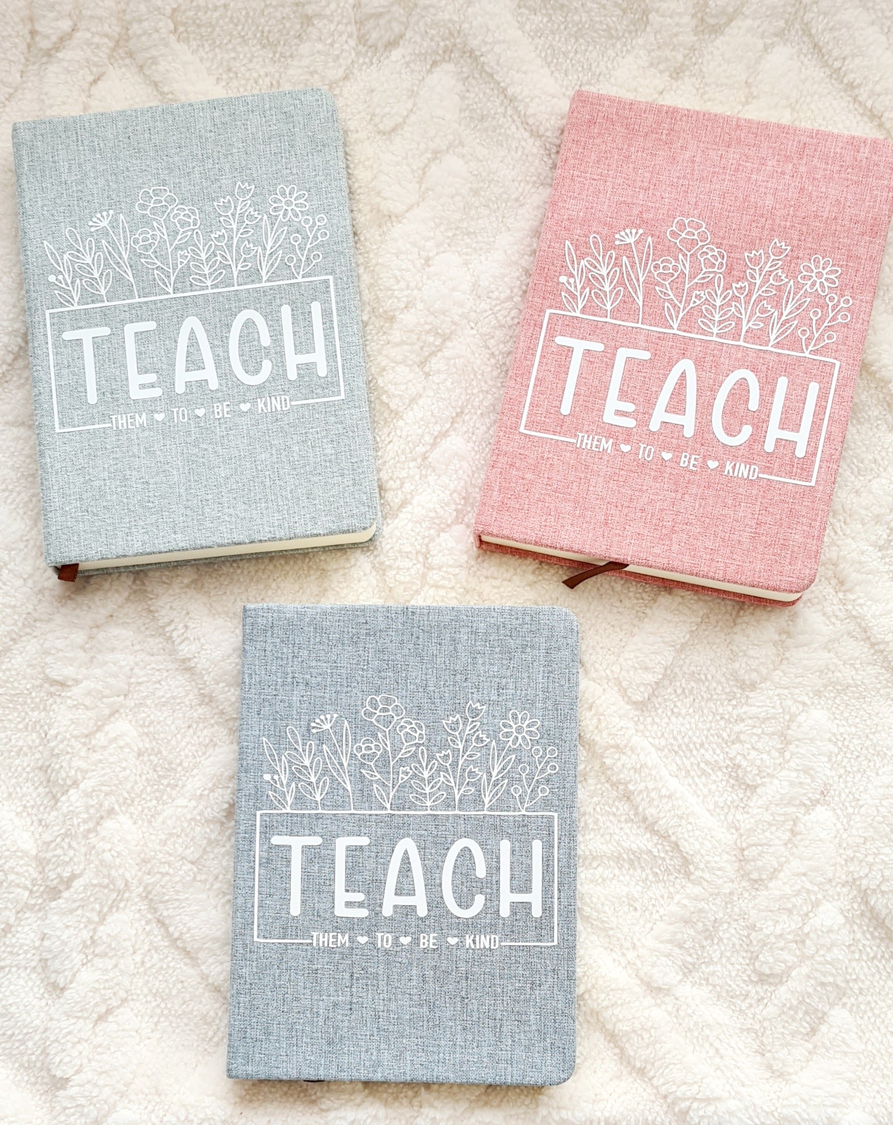 These A5 journals are the perfect way to say thank you to a teacher. They are half lined, half blank pages, with a ribbon bookmark inside.